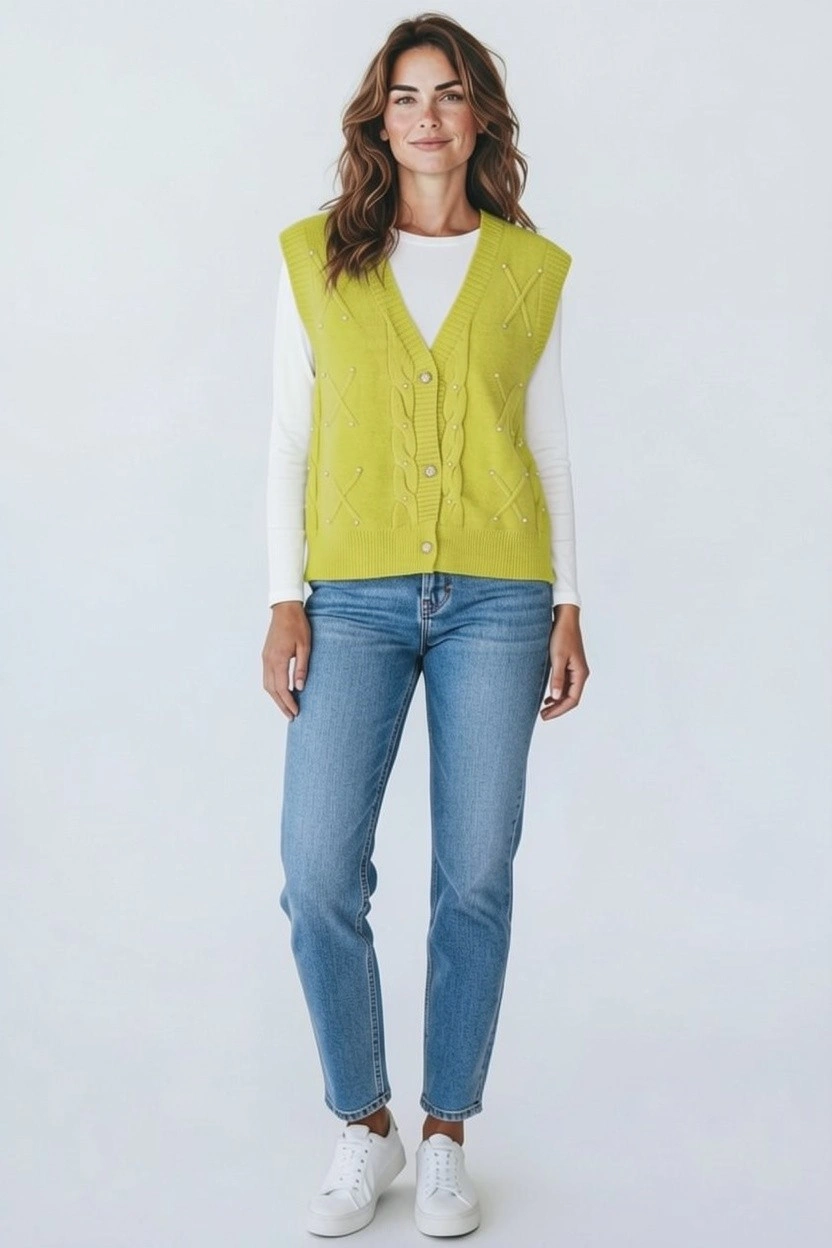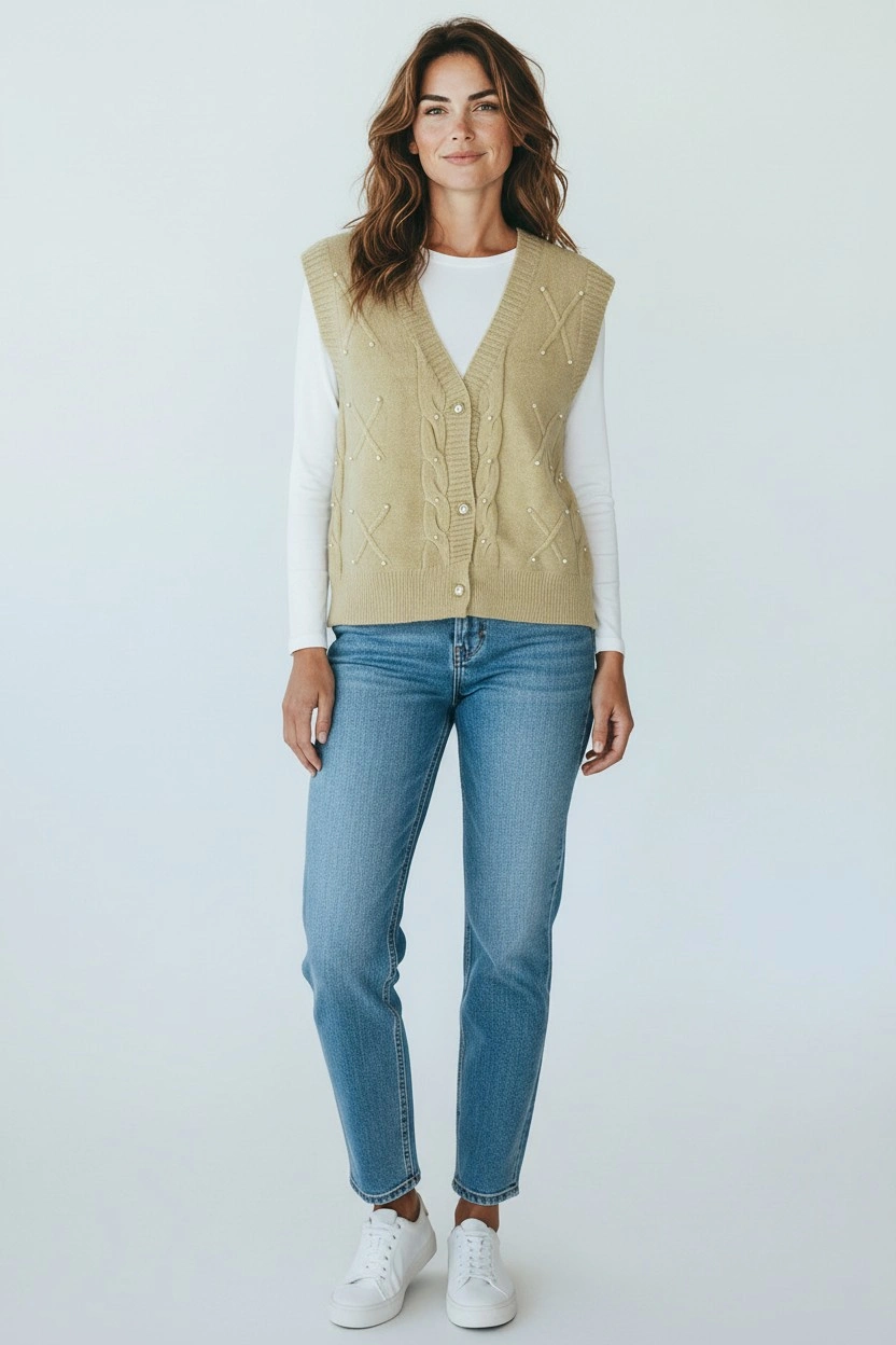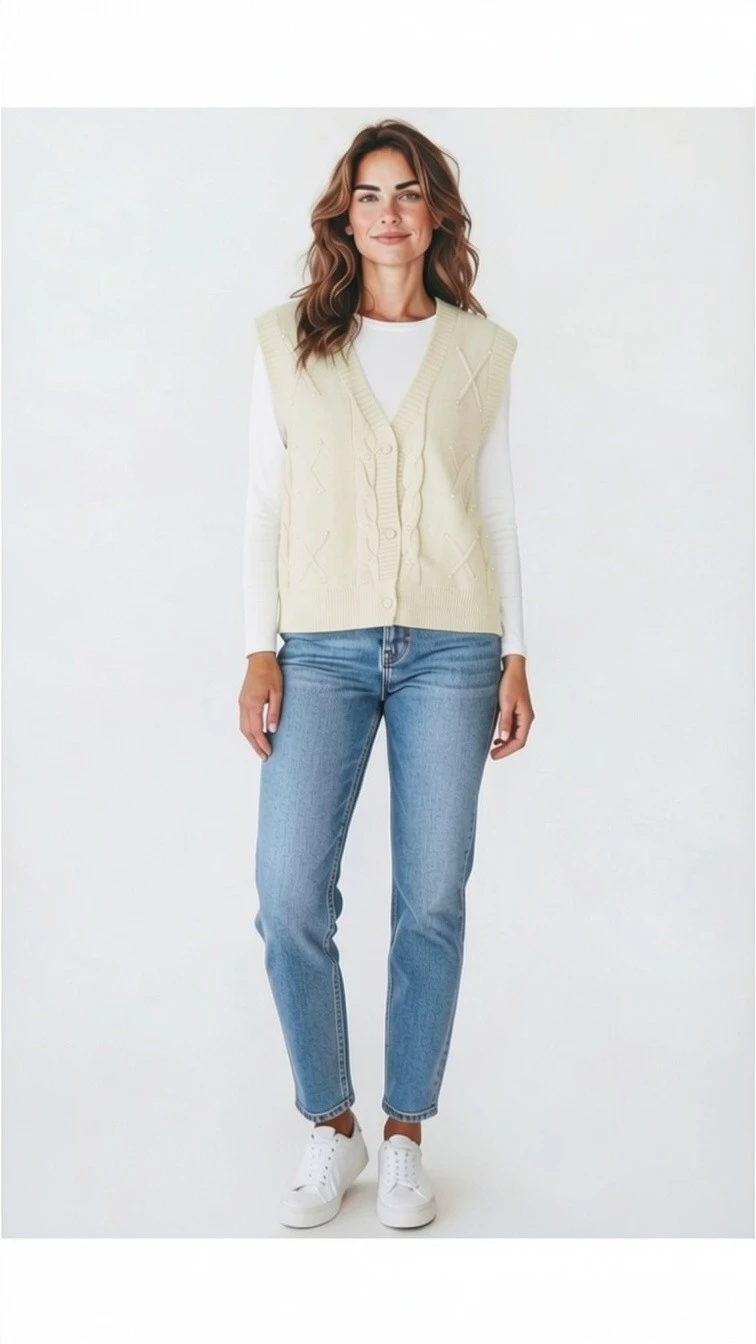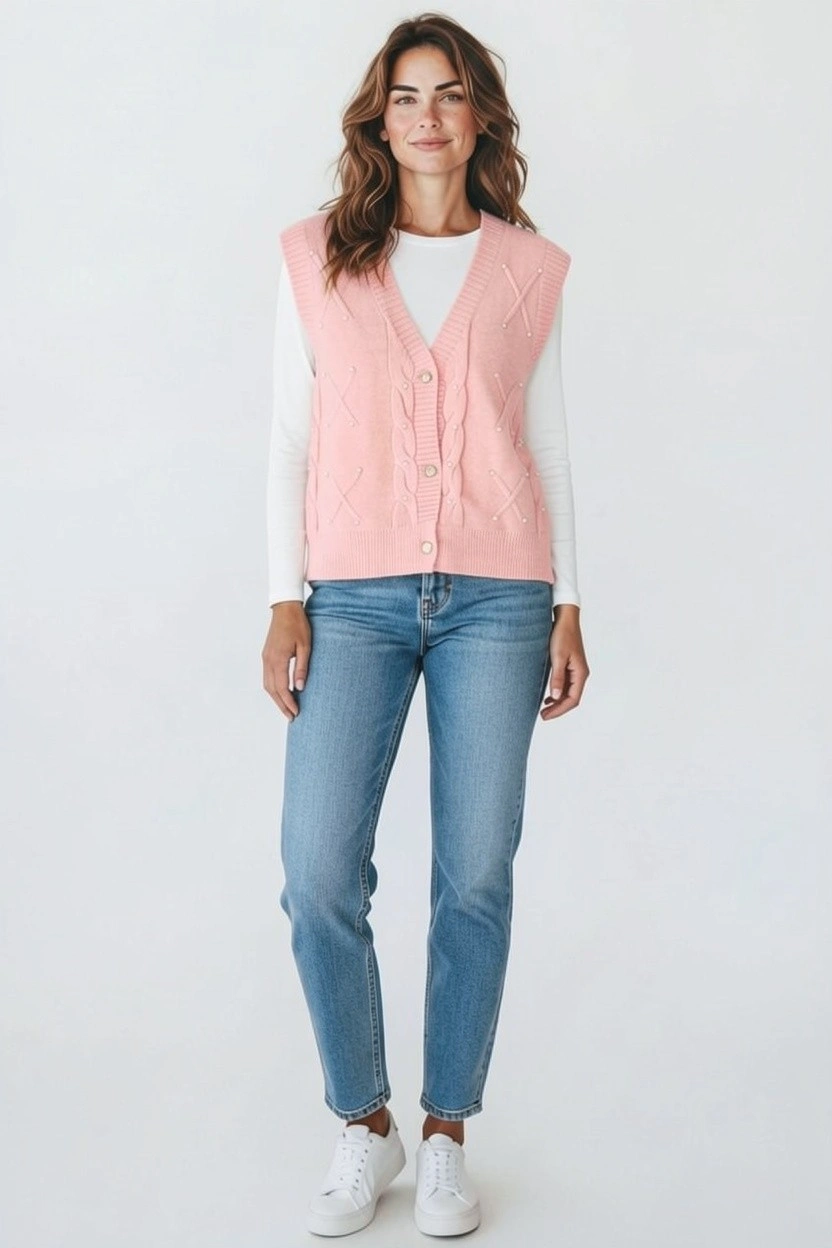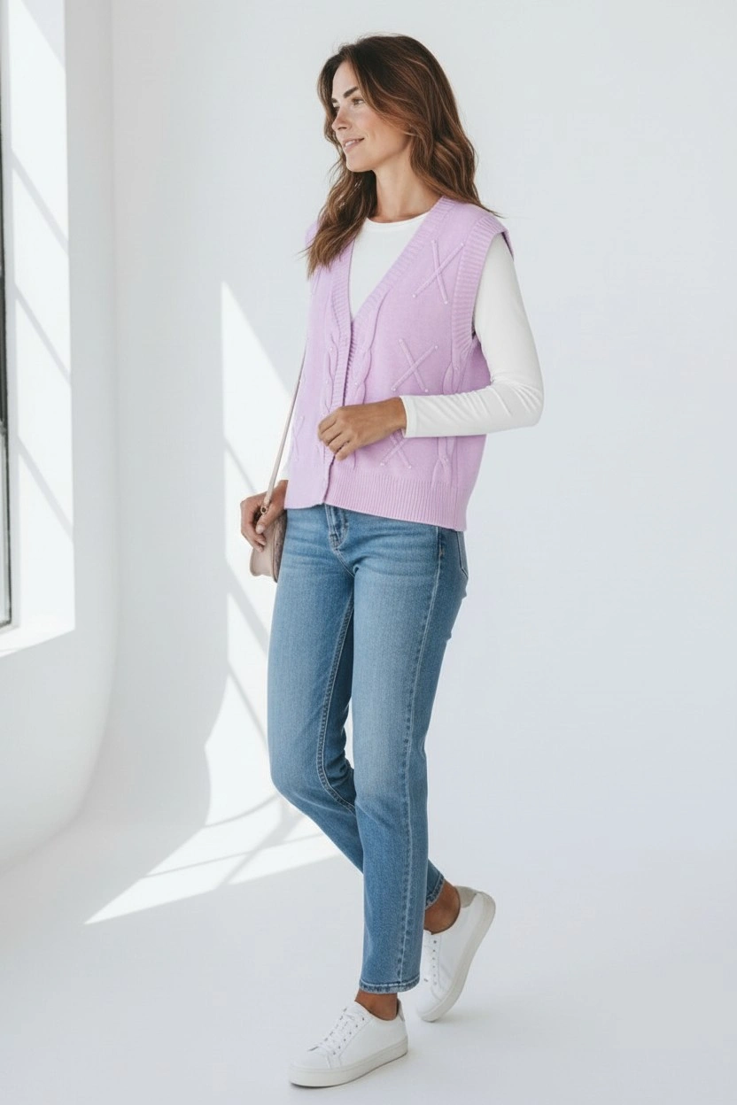 Refresh your wardrobe with this elegant cable knit sweater vest, designed for easy layering and everyday comfort.