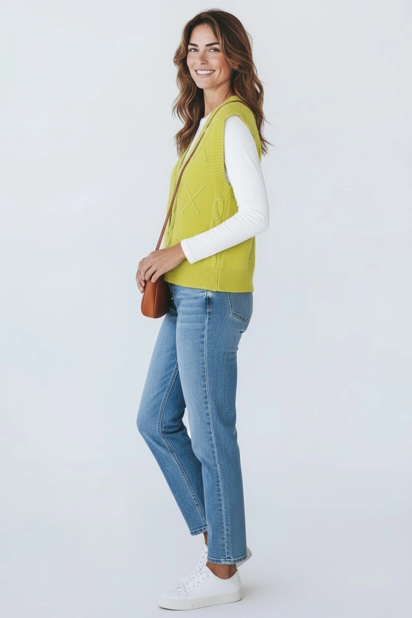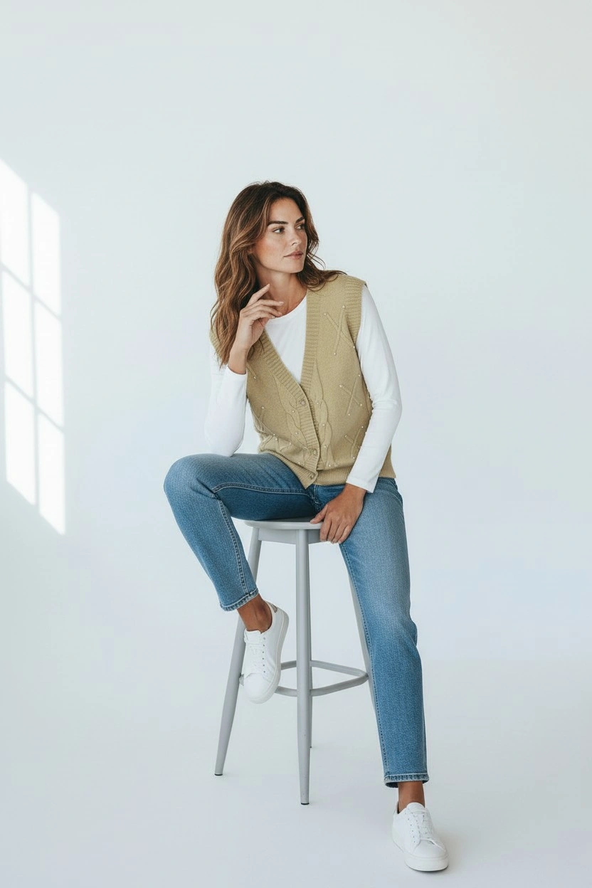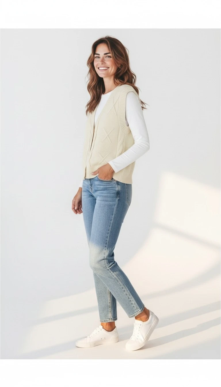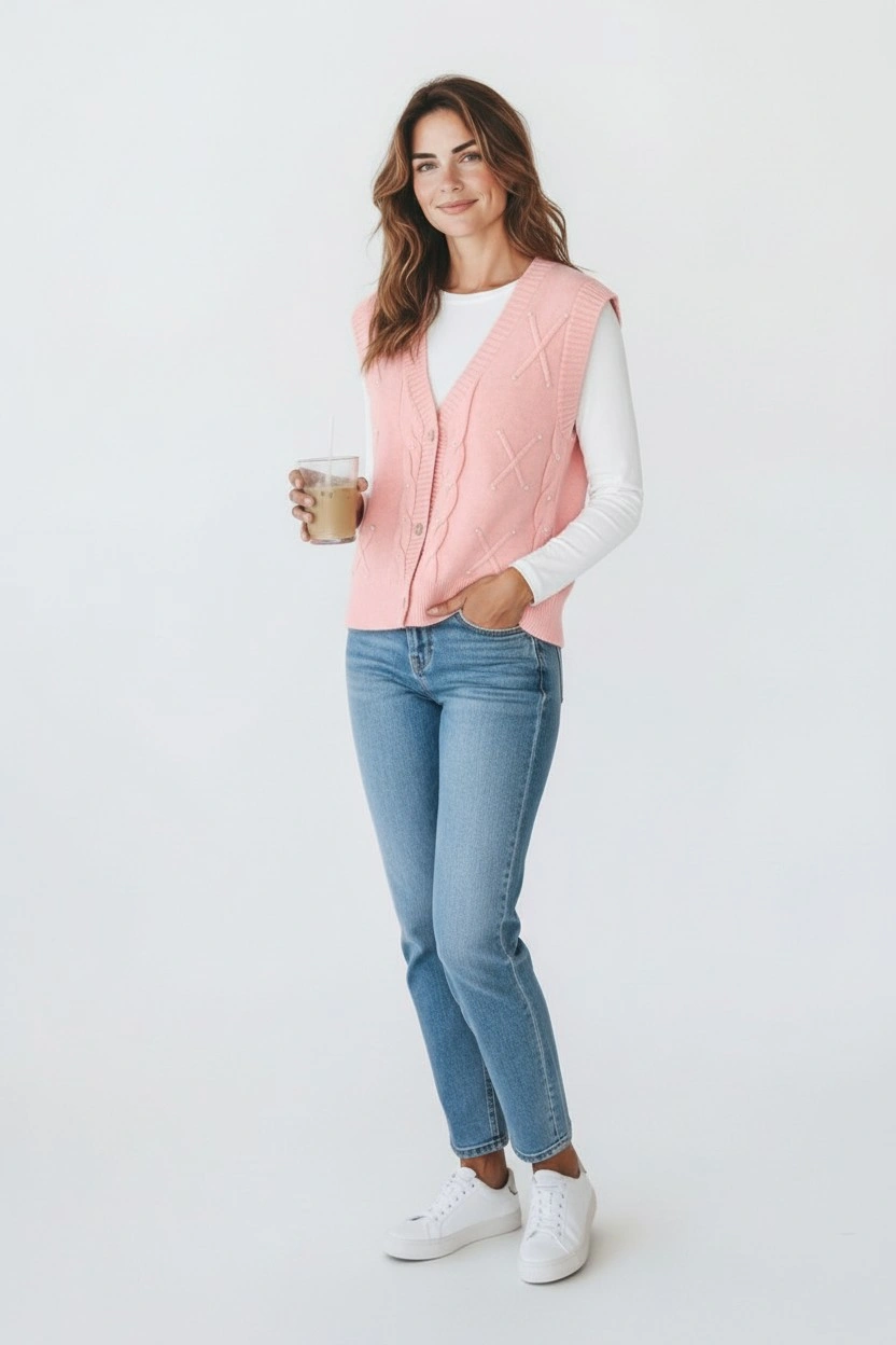 Refresh your wardrobe with this elegant cable knit sweater vest, designed for easy layering and everyday comfort.